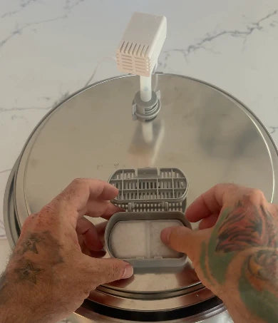 Der 5‑Schichten-Kohlenstofffilter entfernt Magnesium, Calcium, Haare, Schmutz und andere Verunreinigungen aus dem Wasser Ihres Hundes.